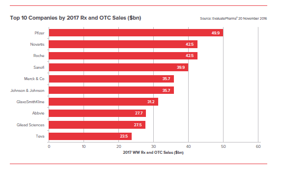 • Pfizer to dominate prescription and OTC sales in 2017, banking nearly $50 billion